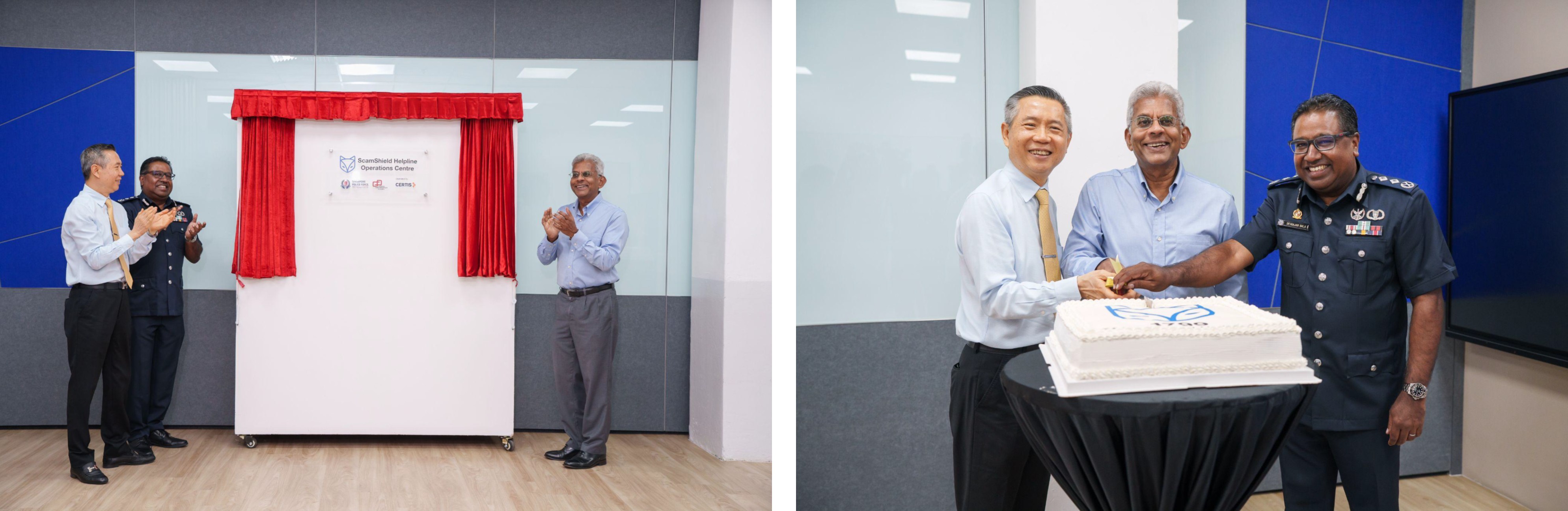 The celebration started with a commemorative plaque unveiling and cake-cutting ceremony, led by Mr Gerald Singham, NCPC Chairman, Mr Tan Puay Kern, NCPC Vice Chairman, and Mr Devrajan Bala, Director of the Scam Public Education Office. The ceremony marked a milestone in the helplineās journey in supporting the community against scams.