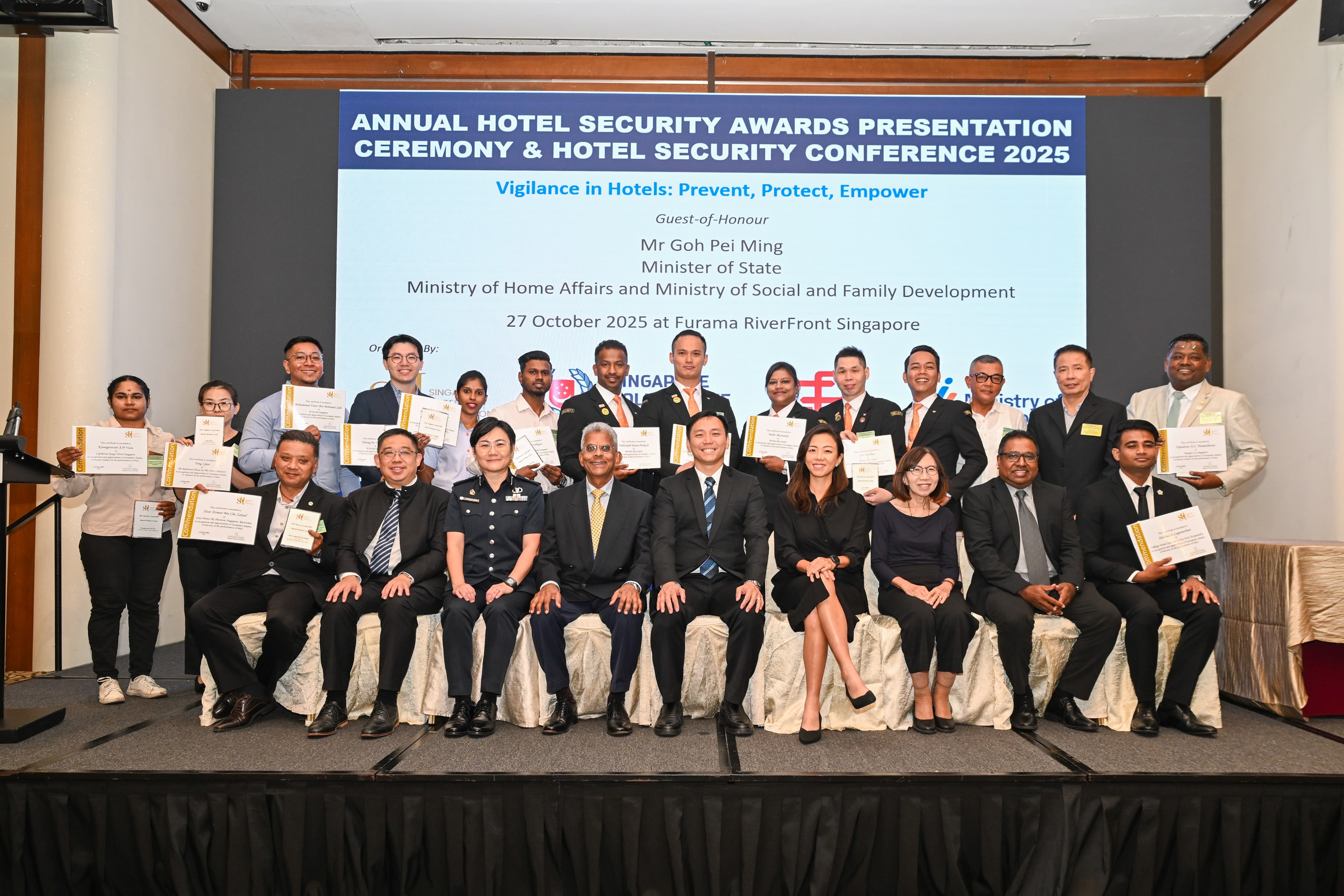 The Annual Hotel Security Conference cum Awards Presentation Ceremony, co-organised by NCPC, Singapore Hotel Association and Singapore Police Force, was held on 27 October 2025 at the Furama RiverFront Singapore.